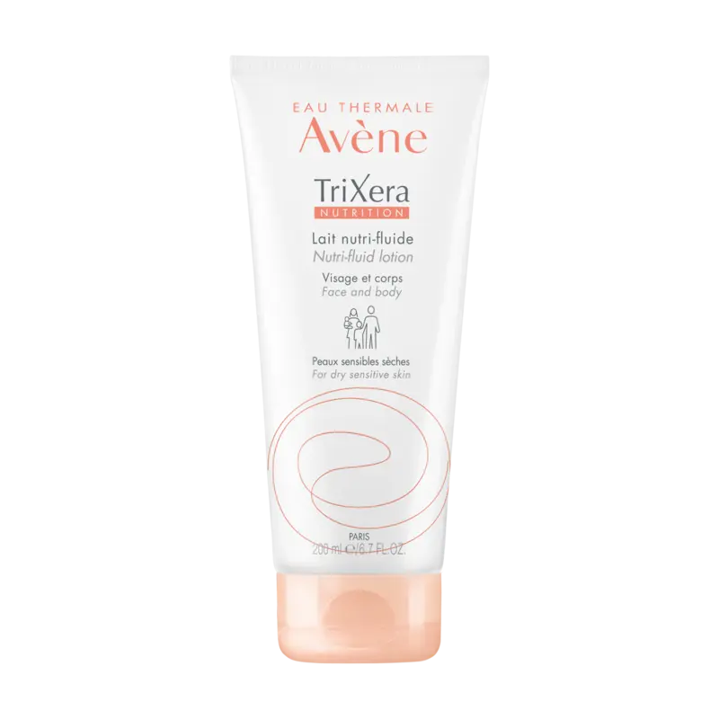 O TriXera NUTRITION Loção Hydra-Fluida hidrata, protege e repara a barreira da pele seca de toda a família. Sua textura fluida, não gordurosa e não pegajosa facilita a aplicação e permite que a roupa possa ser colocada rapidamente. Graças à combinação de um trio de lipídios à base de plantas, Selectiose (um ingrediente ativo patenteado da Pierre Fabre) e Água Termal Avène com propriedades suavizantes e anti-irritantes, este produto de cuidado da pele sem fragrância acalma a sensação de pele esticada e hidrata por 48 horas